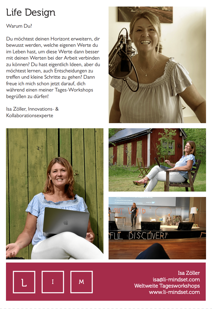 Make your first important step: Try it out and visit one of my day-workshops around DESIGN YOUR LIFE