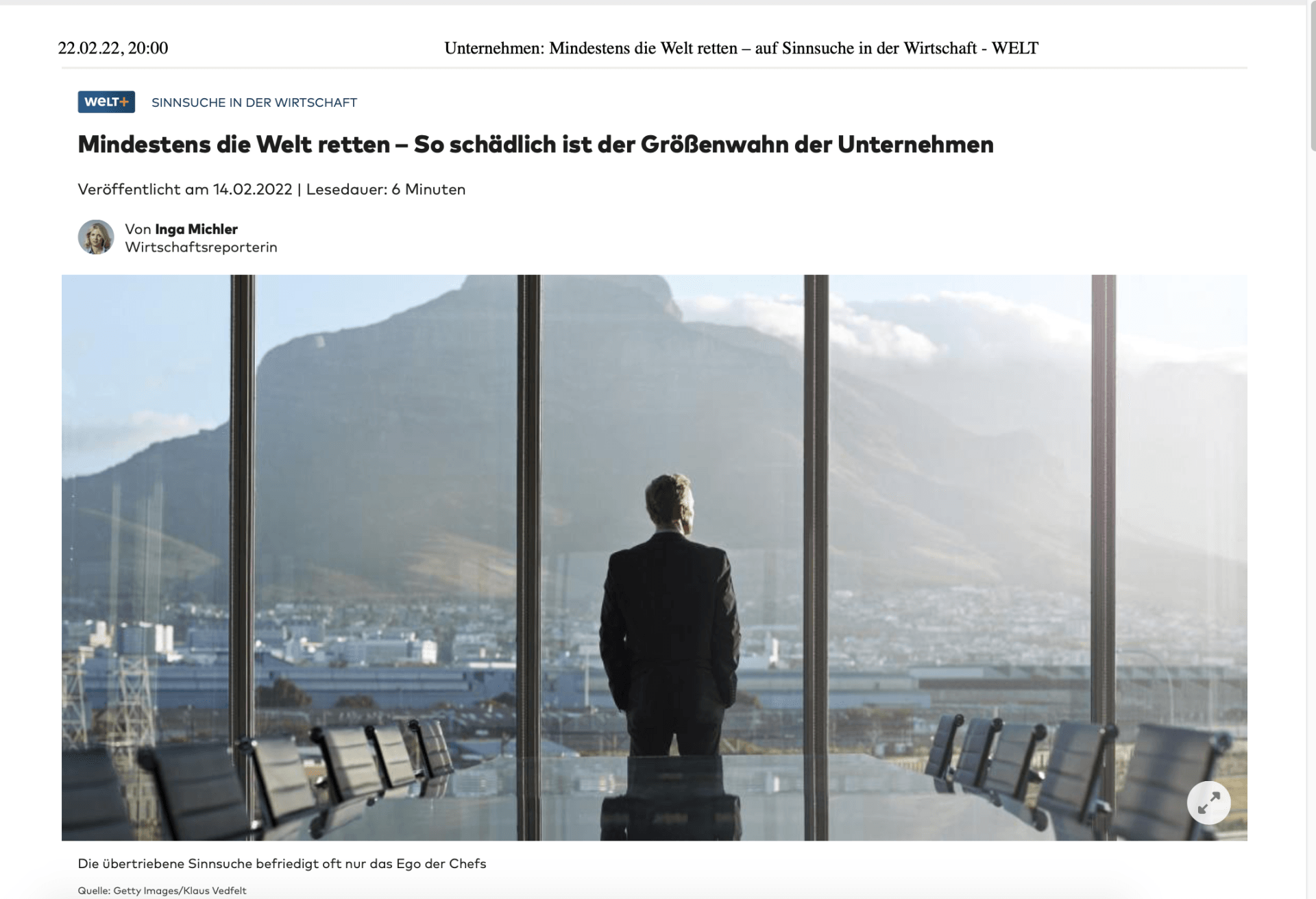 Wo liegt der Sinn in dem Ganzen, was ich da tagtäglich tue? Als ich noch bei einer globalen Softwarefirma gearbeitet habe, fingen die innovativen Firmen vor ca. 10 Jahren an, darüber nachzudenken, welcher gute Spruch sie am treffendsten darstellt, so dass sich die Mitarbeiterin/ der Mitarbeiter am besten mit der Firma identifiziert und somit auch am glücklichsten und produktivsten ist. Da ich nicht direkt im Softwaregeschäft, sondern im Lernbereich tätig war, fragte ich mich oft zu der Zeit, welche Rolle eigentlich ich als Person und meine Arbeit dabei spielten. Und eine richtige Antwort fand ich eigentlich nie wirklich, wenn sie meine Firma so darstellte, als würden wir alle einen „riesigen" Beitrag in der Welt leisten, dadurch dass sich unsere Software weltweit verkaufte und nicht nur Business machte, sondern für eine bessere Welt sorgte. Den Sinn des „kleinen Mitarbeiters“ zu suchen, fand ich genauso schwierig wie über den allgemeinen Sinn des Lebens nachzudenken. Eines ist mir aber immer klarer geworden: Wenn wir nicht ins Grübeln verfallen, sondern uns selbst auf die Suche machen nach etwas, worauf wir den Fokus legen möchten, nach etwas, was für uns im kleinen einen großen Sinn macht, dann ist das viel wichtiger als darüber nachzudenken, ob wir zu einem Slogan passen oder nicht. Denn Die Frage nach dem Sinn des Lebens können wir genauso wenig beantworten wie die Frage: Wird so etwas wie Corona wiederkommen? Oder wird der Zug morgen nach Hamburg wieder Verspätung haben? Lassen wir es also sein, über "zu Großes" nachzudenken. Genauso wenig sollten wir uns damit befassen, zu verstehen, was Firmen eigentlich tun, wenn sie sich verbiegen, um ihren „Sinn“, ihren „Purpose“ zu demonstrieren. So jedenfalls sieht das auch Prof. Dr. Ingo Hamm in seinem neuen Buch „Sinnlos glücklich“, in dem er etliche gute Beispiele dieser Art Konzerne darstellt, die nichts anderes tun, als die Menschen einzuschüchtern mit ihren „galaktischen“ Sprüchen. Ein Beispiel möchte ich hier gerne preisgeben: „We will aim to continuously promote harmony between people, society, and the environment while contributing to the property of society“. Harmonie und Wohlstand der Gesellschaft? Das US-Innenministerium! Nein. Ein asiatischer Autohersteller… In einem Artikel der WELT am SONNTAG von Dr. Michler wird dieses Thema auch wunderbar angesprochen, und sowohl Prof. Hamm als auch ich wurden für diesen Artikel interviewt. Wer Lust hat, ihn zu lesen, der möge diesem Link folgen. Du möchtest den inspirierenden Prof. Ingo Hamm einmal live erleben? Genauso wie den geistreichen und vielfältigen Dr. Bernhard Zünkeler? Oder die Power-Frau: Julia Wagner, die mit ihrer brieten Expertise für Diversion und (Self) Empowerment brennt? Genauso wie die ganzheitliche Ernährungscoachin Katharina Gantenberg erleben? Dann nichts wie hin zu unserem Frauennetzwerktagen am 21. und 22.10.2022 im Barockschloss Mannheim und dem Freischwimmer in Ludwigshafen. Anmeldung und Infos hier . #sinnlosglücklich #sinnstiftendeunternehmen #worklifedesign #worklifebalance #lifedesign #frauennetzwerke #sinn Artikel im LinkedIn