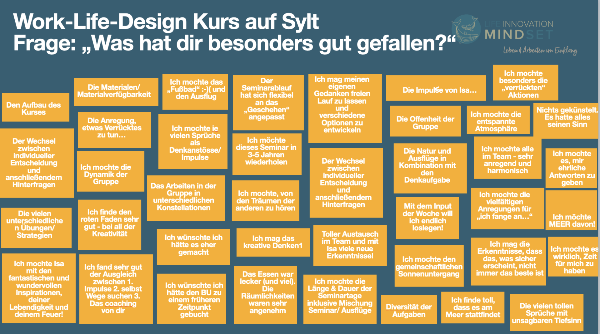 Übersicht Feedback Seminar auf Sylt "Work-Life-Design Dezember 2021